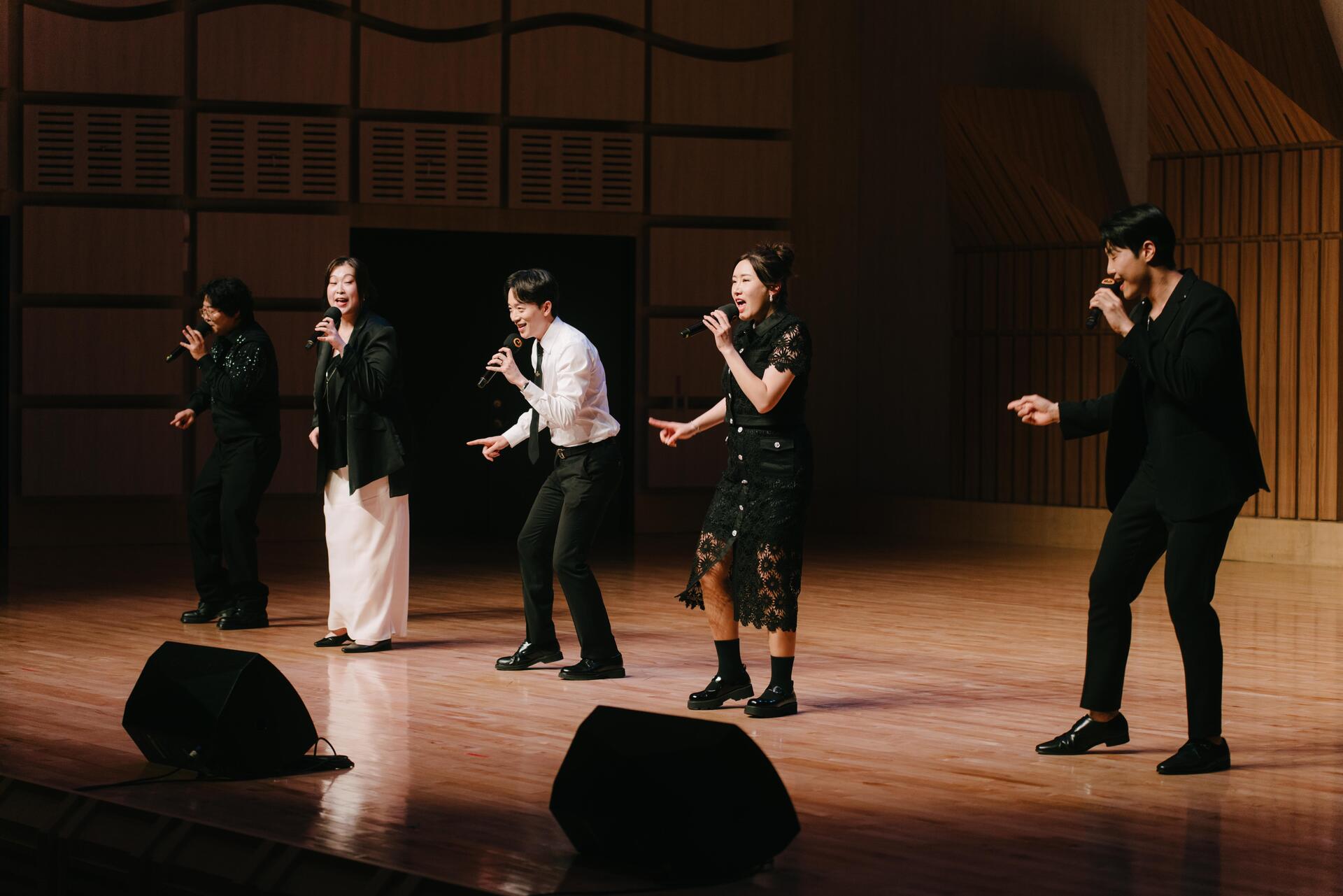 五位演出者在開場就以〈Circle of Life〉與〈Beauty and The Beast〉兩首迪士尼熱門主題曲炒熱氣氛,接續席捲全球的洗腦神曲〈APT〉,讓台下觀眾一秒陷入在A Cappella改編的魅力中。