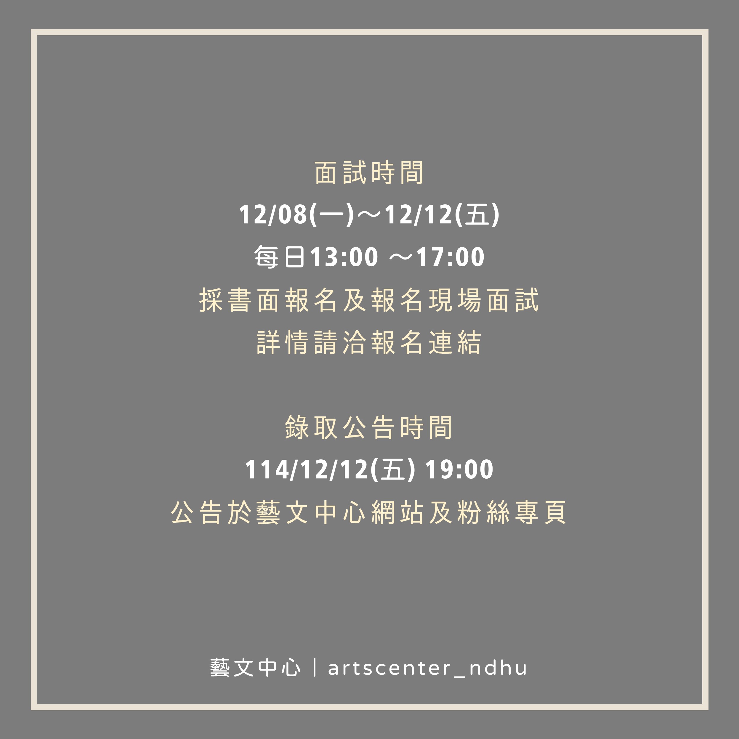 🔅錄取公告:114年12月12日 (五) 晚上7點,公告於藝文中心網站、Facebook及Instagram。
